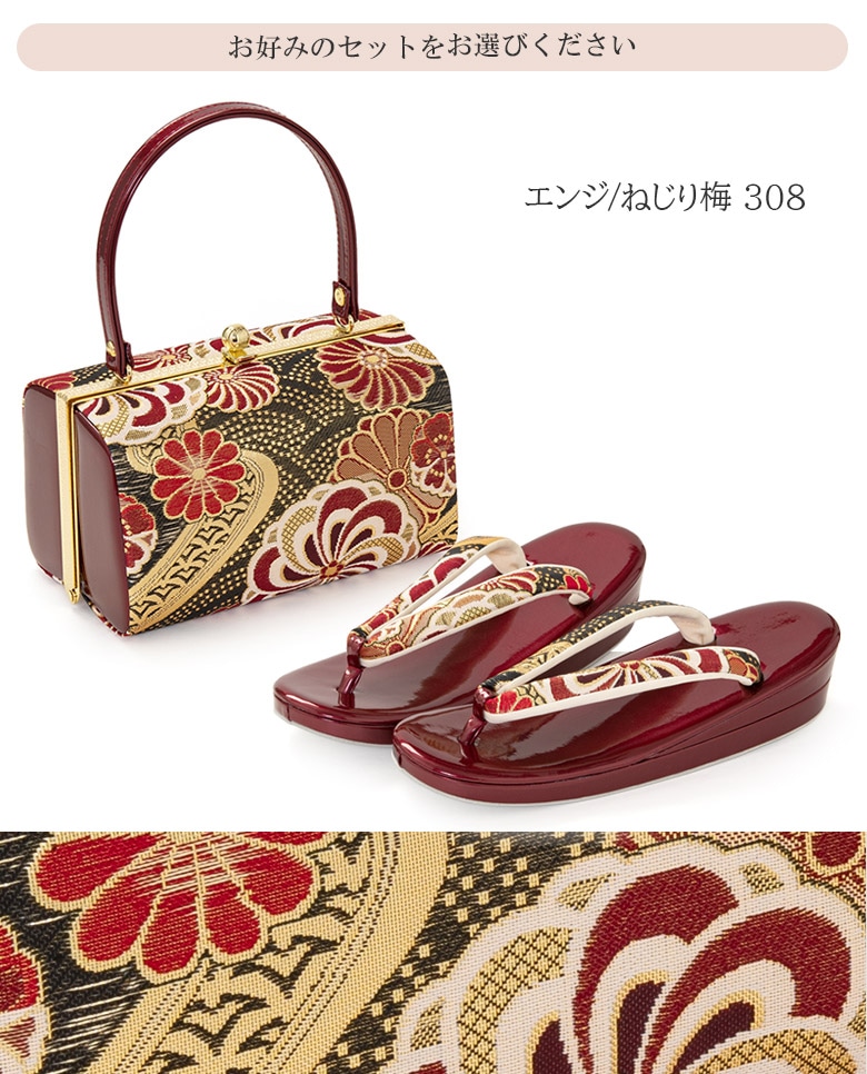 草履バッグセット 成人式 結婚式 フォーマル エナメル 金襴 S M L LL 3L 大きいサイズ ゴールド 黒 エンジ シルバー 金 銀 和装バッグ 着物バッグ レディース 婦人和装