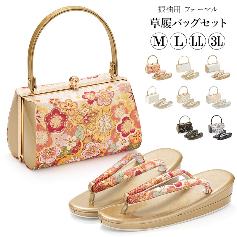 草履バッグセット 成人式 結婚式 フォーマル 厚底草履 あしなが効果 エナメル 金襴 S M L LL ゴールド 黒 エンジ シルバー 金 銀 和装バッグ 着物バッグ レディース 婦人和装