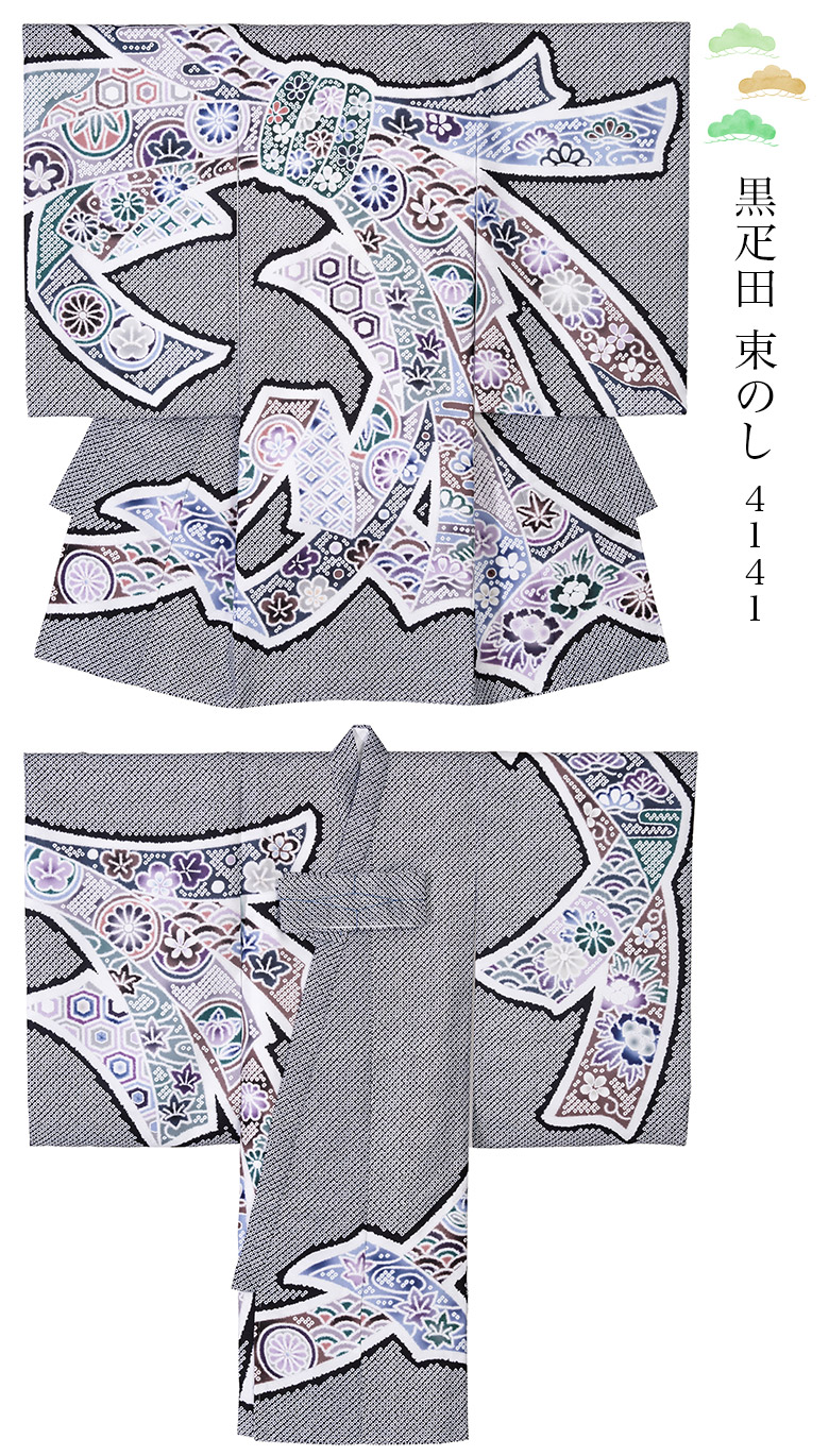 衿に縫い付けてある「付け紐」には魔よけの意味を持つ「紐飾り」が施してあります。 付け紐を束ねているしつけ糸と少し形が似ていますが、紐飾りは切らないようご注意ください。