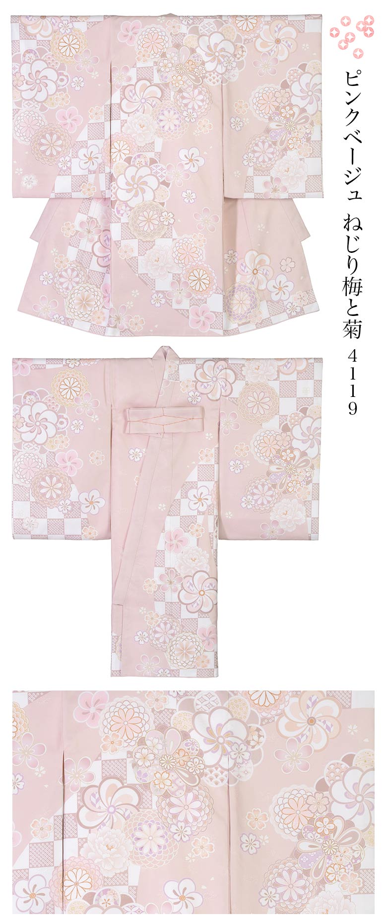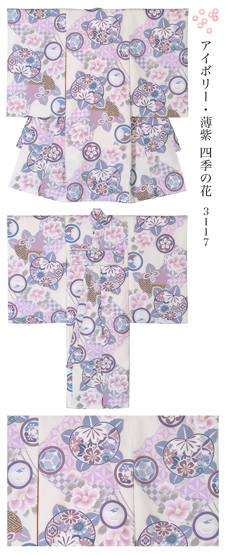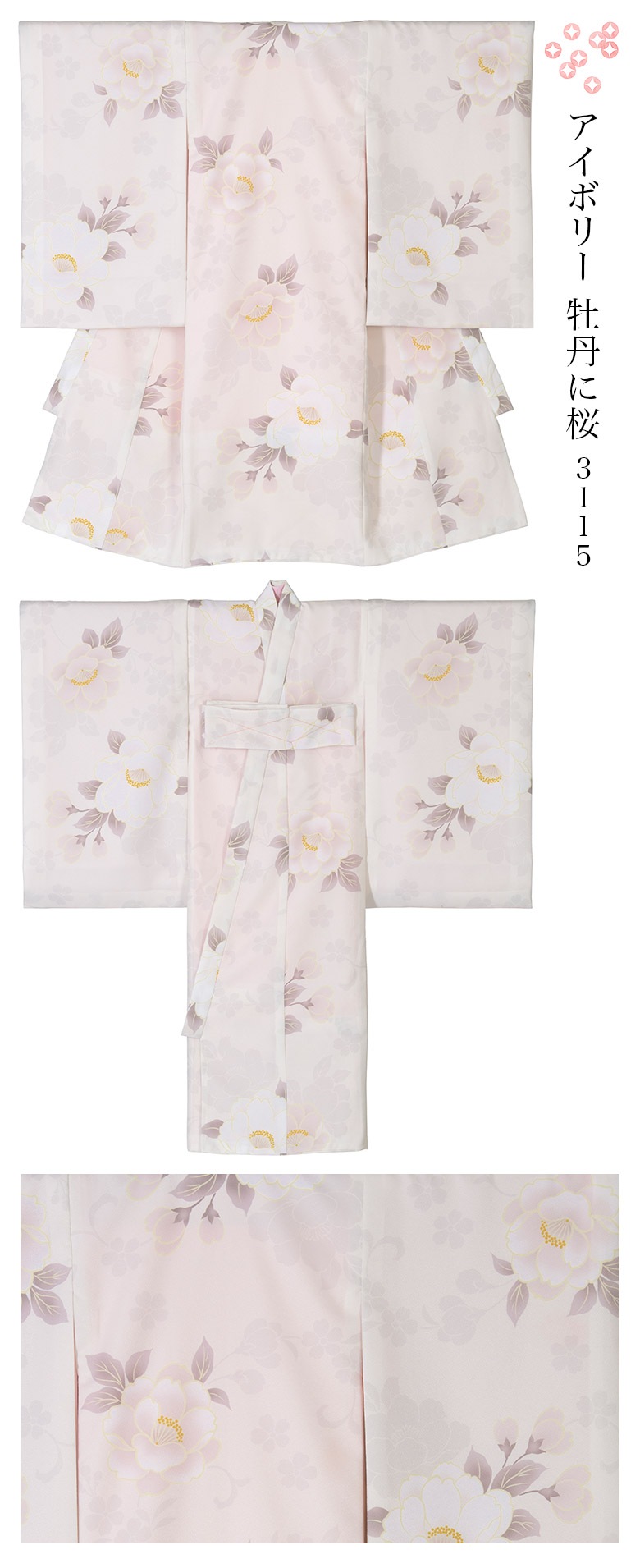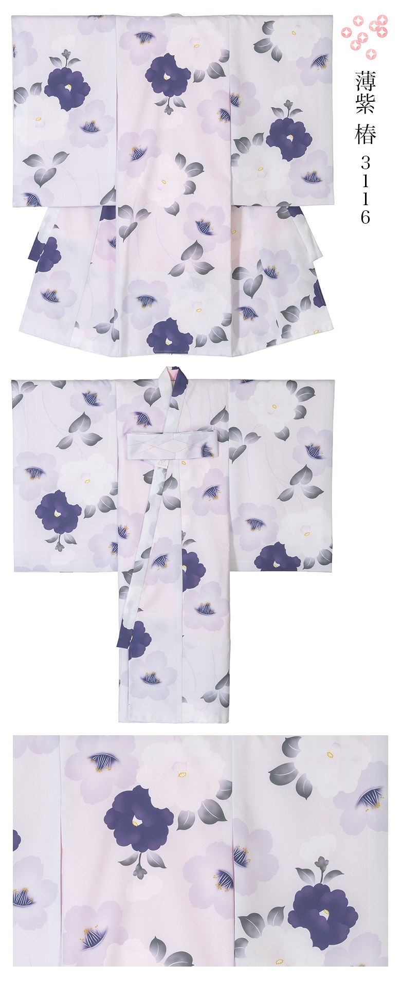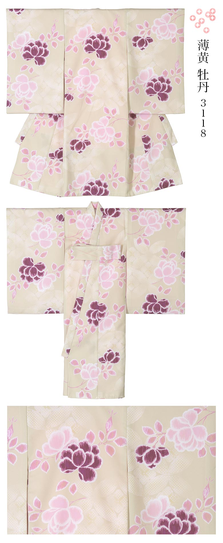 2.着物の裾から衿先までをざっくりと縫いとめている糸は外してご使用ください。しつけ糸は表から見えている糸のみです。