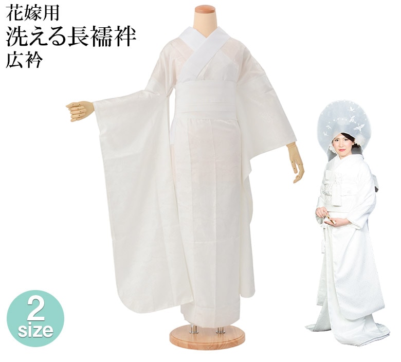 婚礼衣裳・小物 > 和装小物・着付け小物 > 花嫁用 洗える長襦袢 白 広衿 袖丈2尺8寸5分(108cm) ちりめん半衿付き ポリエステル 生地日本製 開封後の返品交換不可
