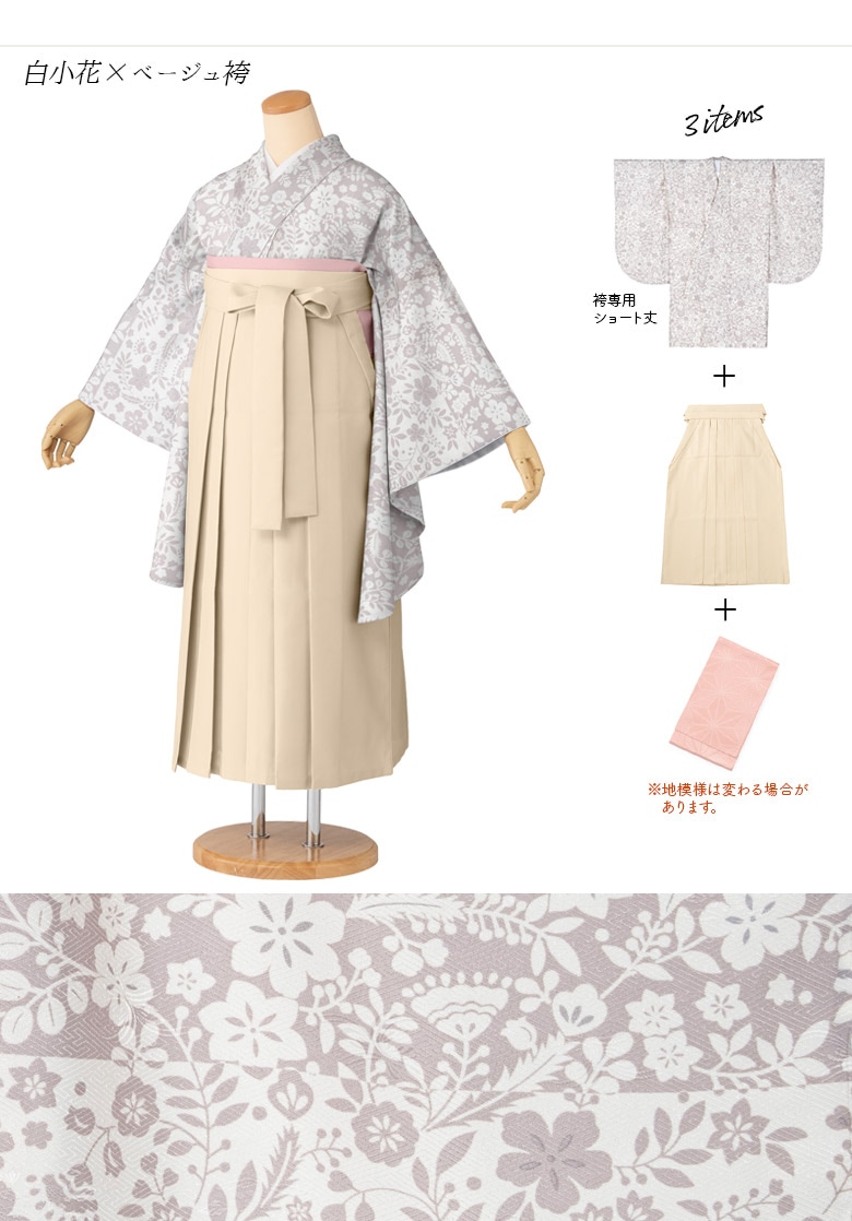 トップ > 女性和装 > 卒業式着物・袴 > セット > ぽっちゃりサイズ 卒業式 袴セット プラスサイズ ゆったり ワイド 大きい ラージ 小紋柄 二尺袖 無地袴 3点セット くすみカラー ニュアンスカラー 小振袖 女性 レディース 購入