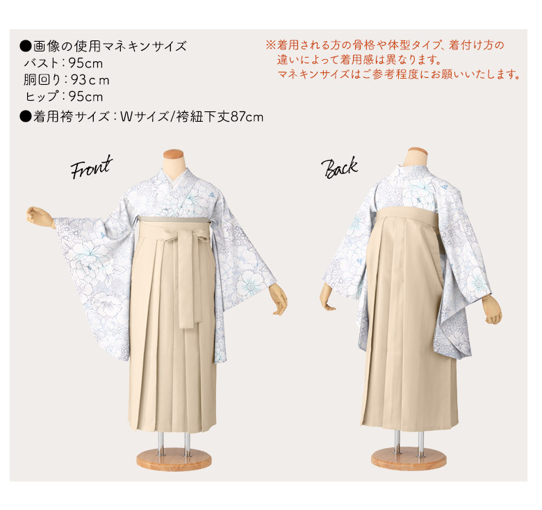 当店のサイズ表記は袴紐下丈(前紐を含まない長さ)となります。