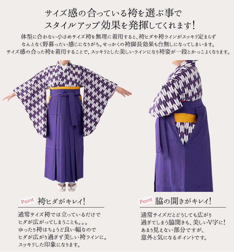 サイズ感の合っている袴を選ぶ事でスタイルアップ効果を発揮してくれます。
