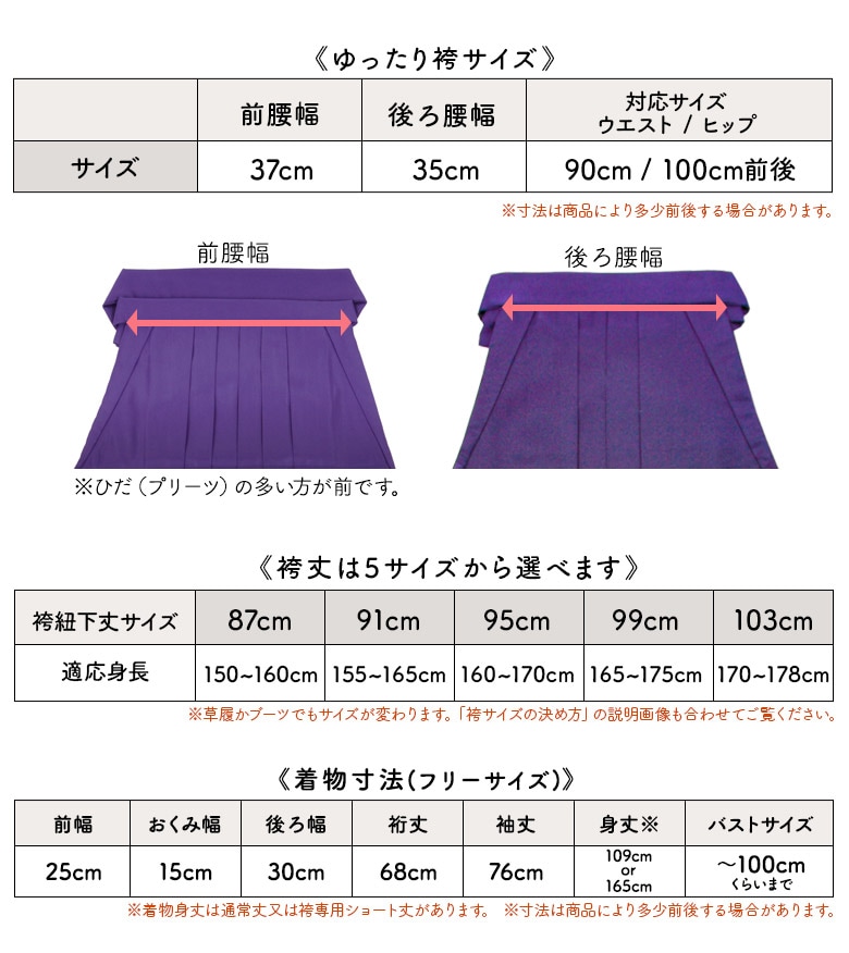 袴寸法:前腰幅37cm/後ろ腰幅35cm