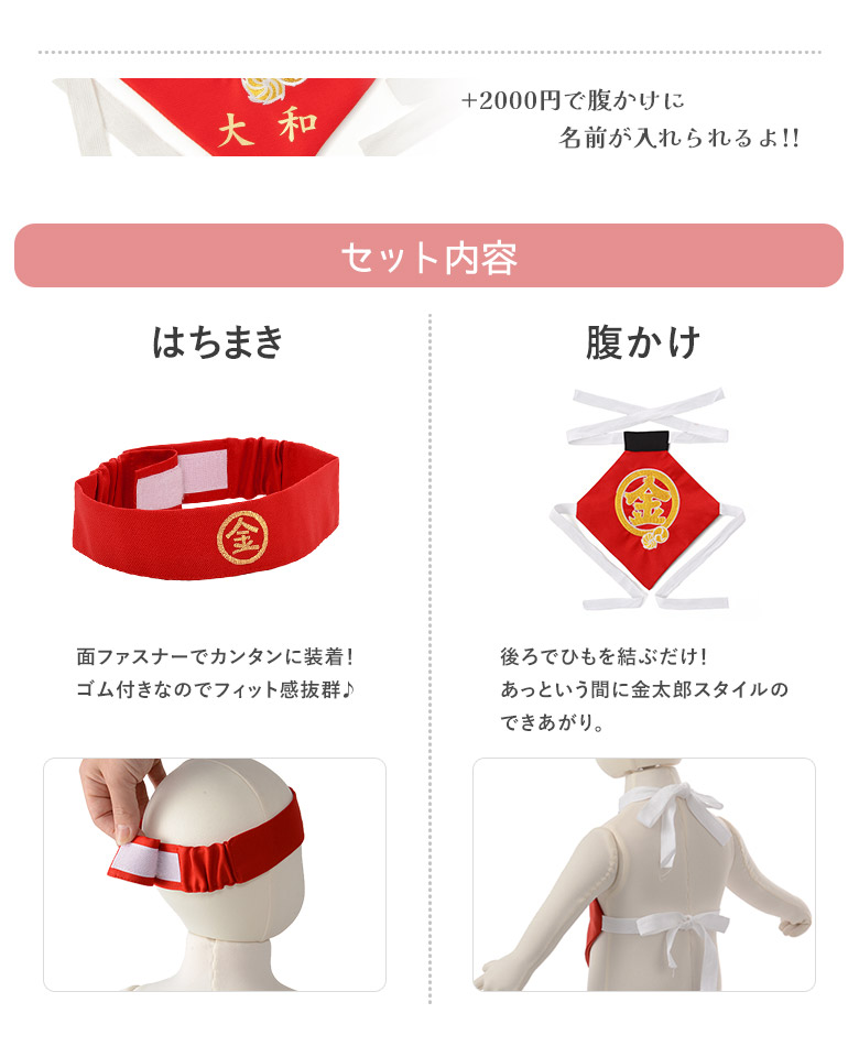 金太郎 コスプレセット コスチューム ふわふわまさかり付き 男の子 ベビー衣装 初節句 端午の節句 100日 1才 2才 はちまき 腹かけ マサカリ 刺繍 名入れ