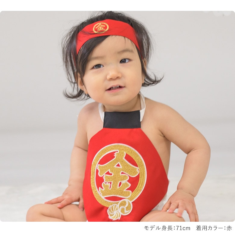 ベビー 金太郎 コスプレセット 初節句 端午の節句 衣装 100日-2才 金刺繍 はちまき楽々 腹掛け まさかり