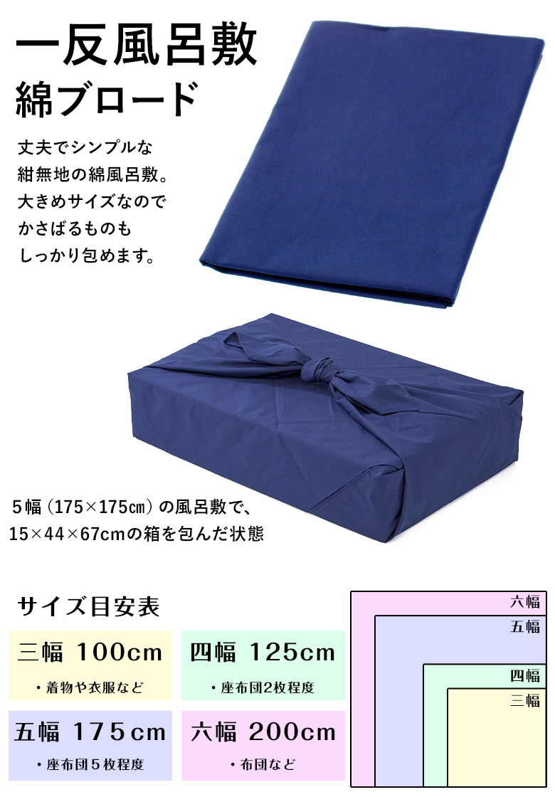 和雑貨 風呂敷 大判 ふろしき 100cm 125cm 175cm 200cm 綿 ブロード 紺 一反風呂敷