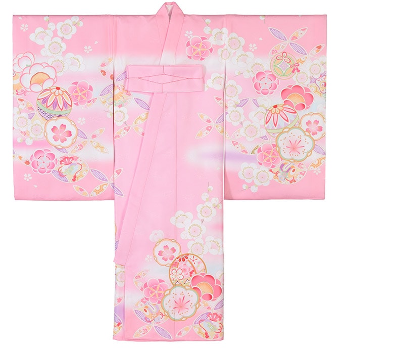 お宮参り 初着 女の子 産着 着物 お祝い着 赤ちゃん ポリエステル ピンク クリーム 黄 水色 白 鞠 桜 花車 化粧箱入り 女児 販売